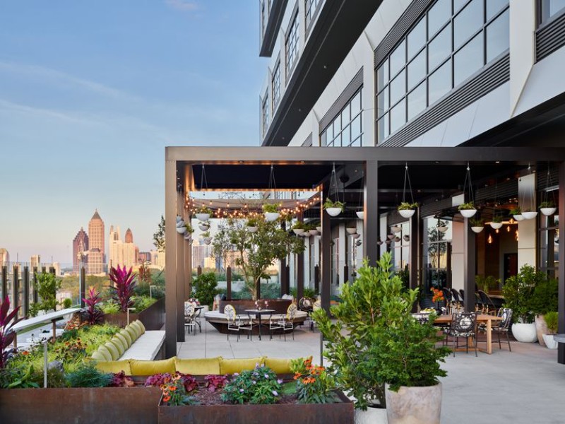 los inquilinos, con cafetería, salas de estar/trabajo al aire libre y un centro de conferencias con capacidad para 30 personas. El proyecto ofrece vistas panorámicas de Buckhead, Midtown y el centro de la ciudad.