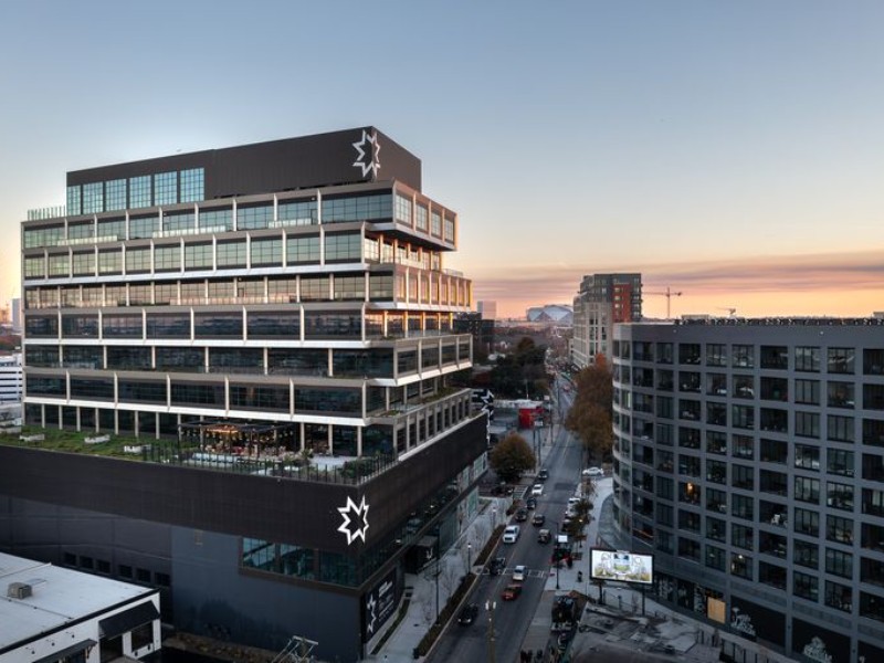 La forma del edificio permite una variedad de superficies, desde 21.000 hasta 33.000 pies cuadrados, lo que ofrece flexibilidad a inquilinos de diferentes tamaños. El componente de oficinas está ocupado casi al 100 % por Outreach, un nuevo inquilino tecnológico; Signature, un grupo líder de coworking; Nike, para su centro tecnológico regional; PrizePicks; Nelson Architecture; Brand Apart; PagerDuty; Sovos; BMI; y más.